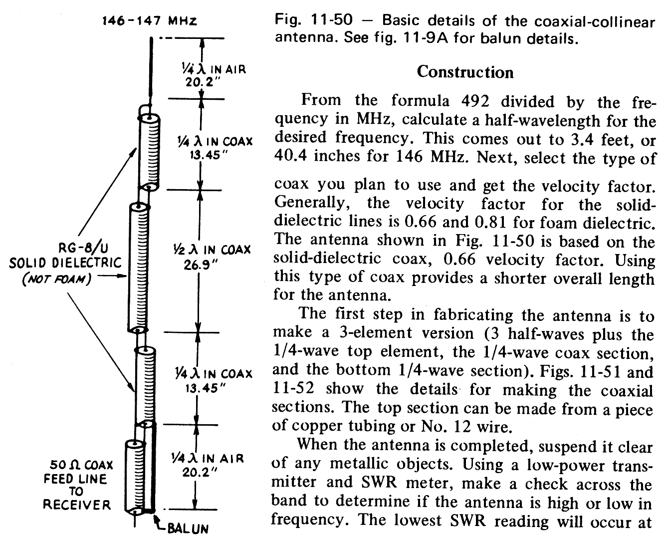 Al in 1995 heb ik es met meerderen een bouwproject gevolgd, welke m.b.v. stukjes oud coax ( RG-58 ) een zeer goede vertikale MONOBAND-rondstraler kan creeren. Deze kan dan b.v. in een fiberglas buis welke als basis antenne dienst kan gaan doen. De antenne zou een gain moeten geven van +5 dBd (ofwel +7 dBi volgens proffesionele fabrieksnormen). Maar als de lengte uitgebreidt wordt kunnen gains "om van te smullen" gerealiseerd worden. :D