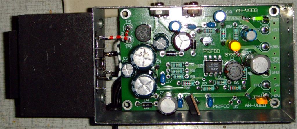 De spanning van de transformator mag niet te laag wezen. Veel hoger moet je ook niet gaan, omdat er anders erg veel vermogen wordt gedissipeerd in de 7805. Zorg hoe dan ook voor voldoende koeling van de 7812 en 7805! Een koelblok of plaat is noodzakelijk. Meet na het bouwen alle uitgangsspanningen na. Deze mogen niet teveel afwijken. Vooral de 24V uitgang verdient aandacht. Daaraan kun je zien of de MC34063 het wel doet. Wijkt de spanning meer dan 0,5V af, dan moet je aandacht gaan geven aan deze "Integrated Switch" of alles daaromheen. Vergeet niet het filter te plaatsen op deze 24V uitgang (zie modificaties).