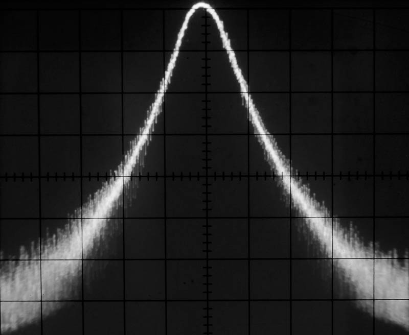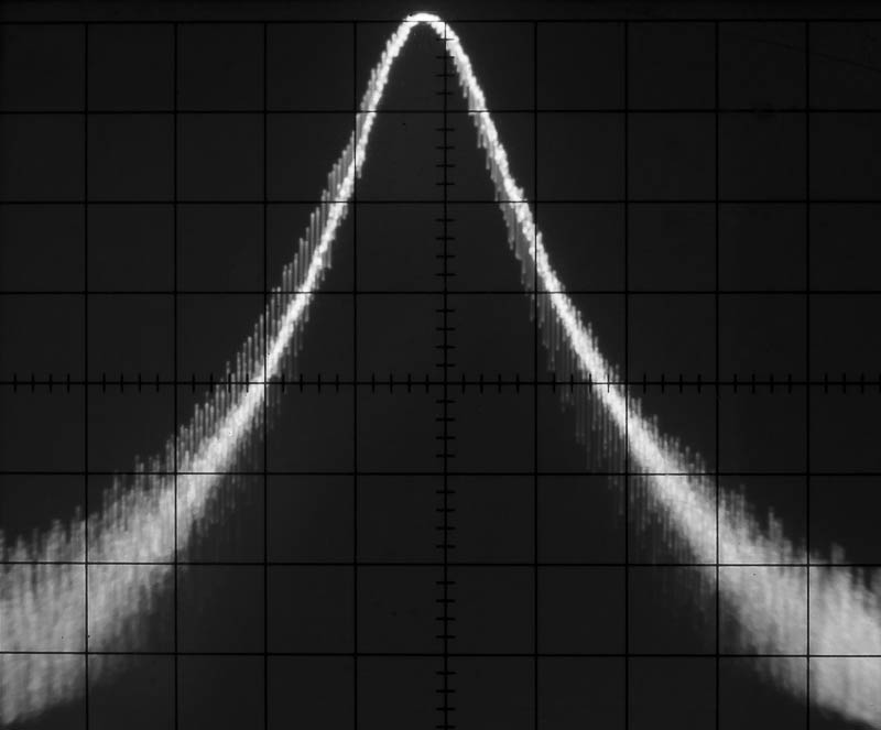 Tenminste de voeding is goed. Er komt nu 30.000.018 Hz uit de tuner met een sweepwidth van 0. De counter toont cijfers ( alleen lijkt het erop dat ik wat fout heb gedaan want de meest linkse is in ieder geval de Minst significanten, het is nu een soort chinese counter. Ik heb een zaagtand en een horizontae baseline. Dat lijkt allemaal te werken.