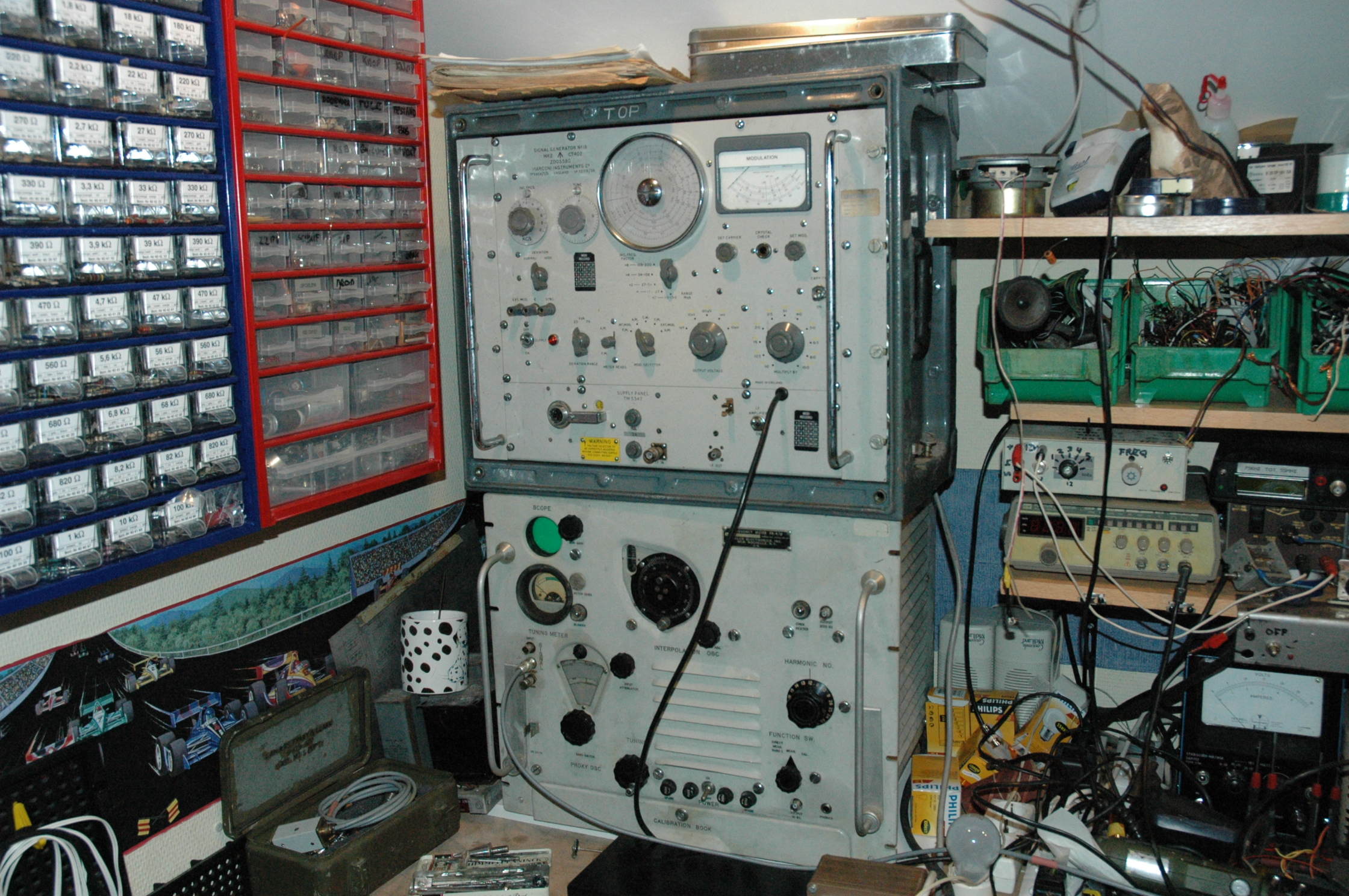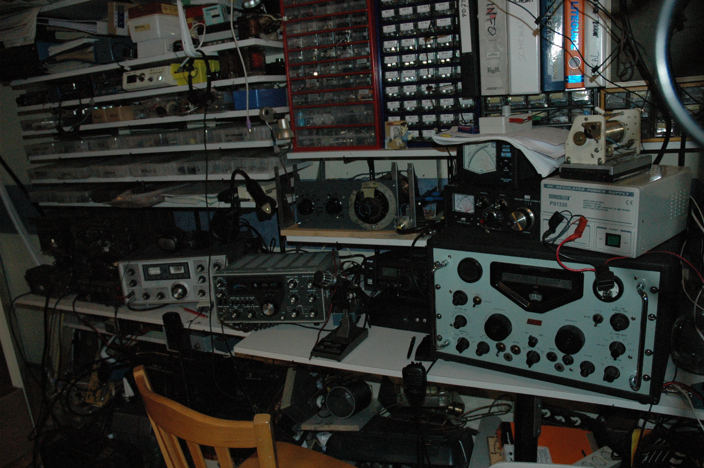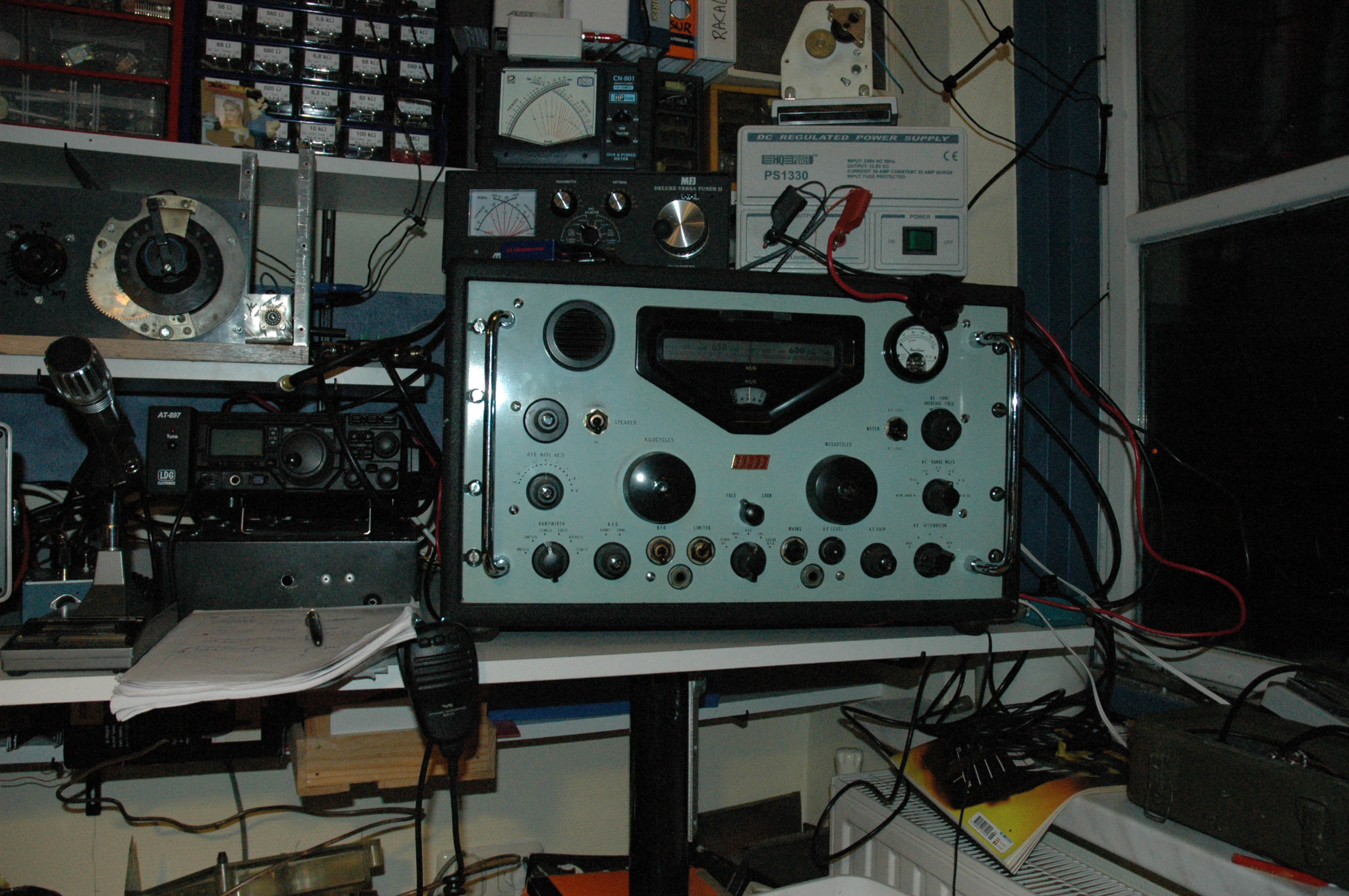 Bij deze wat foto's van wat er in mijn shack staat. Het betreft een Racal RA17L, dit is een jaren 60 ontvanger die vaak door de marine werd gebruikt. Hij heeft een bfo waardoor je SSB kunt horen. De filtering is enorm goed en van 100Hz tot 13KHz instelbaar. Er zit een klein lullig speakertje in dus een externe speaker is een goede keus.