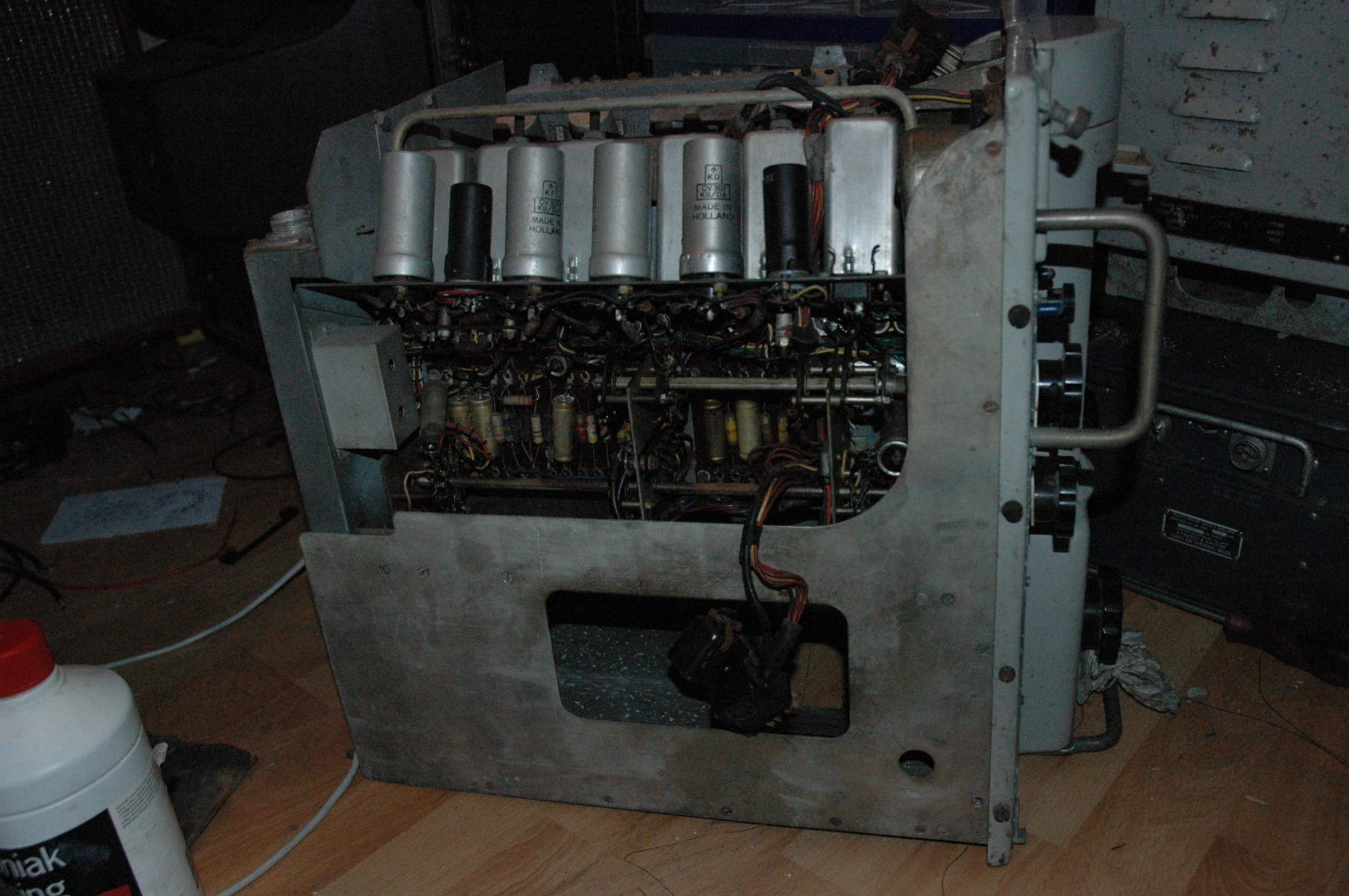 Maar de grootste (letterlijk) aanwinst is een murphy 62B. Een marine ontvanger uit de 50er jaren. Met buizen natuurlijk. Dit is de VLF/KG uitvoering van de B40. Een boel buizen, alu gietwerk chassis, grote knoppen, en 100lbs zwaar (45kg).